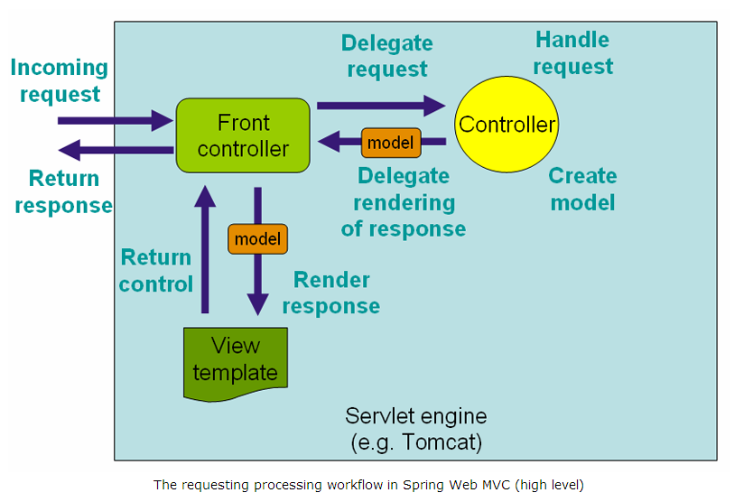 该控制器接受请求并调用基于使用GET或POST方法相应的服务方法。服务方法将基于定义的业务逻辑设置模型数据,并返回视图名到DispatcherServlet.